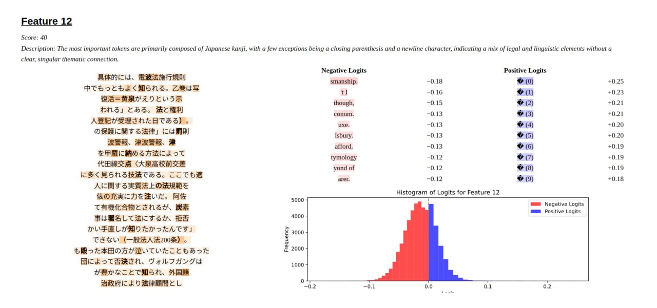 Our dictionary learning system is based on the systems developed by Anthropic in “Towards Monosemanticity”. “Sparse Autoencoders Find Highly Interpretable Features in Language Models” also deserves responsibility for the development of dictionary learning as an interpretability method. An in-depth description of dictionary learning is available on Kola Ayonrinde’s blog.